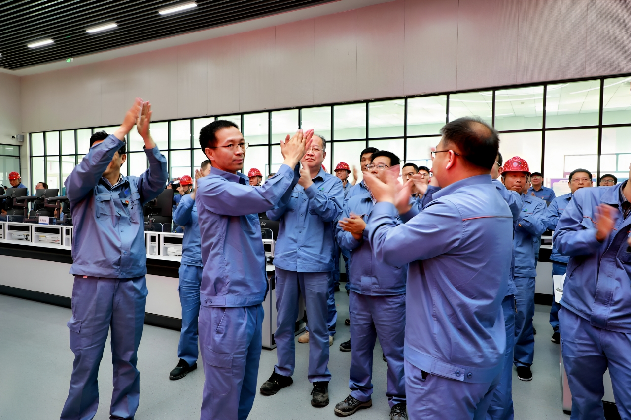 從帶濾機皮帶開始出現零星純堿,現場所有人員都屏息凝神,緊盯大屏,翹首以待。當皮帶逐漸被雪白的純堿覆蓋,并傾瀉而下經重堿大皮帶輸送至煅燒工序時,畫面中現場監控人員豎起大拇指,瞬間,中心控制室內爆發出雷鳴般的掌聲。“成功了!成功了!”大家忘情歡呼,每個人的臉上都洋溢著澎湃的激情、勝利的喜悅和無限的自豪,眼中更是閃耀著希望的光芒。