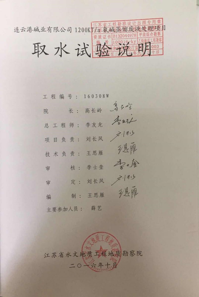 根據吉林化學工業公司設計院《連云港堿廠環境影響報告書》和原江蘇省環境保護局《關于對連云港堿廠環境影響報告書的批復》(蘇環管〔86〕31號)的要求,連云港堿廠產生的廢液送至渣場,經澄清后,上清液經自有排口閘直接排海。1997年,根據淮河流域水污染防治的要求,連云港市環保局向連云港堿廠下達了《關于淮河流域水污染源限期達標排放的決定》(連環管〔1997〕16號)。據此,連云港堿廠與臺北鹽場合作開發了“堿渣場上清液回收利用工程”項目,利用上清液制鹽、制鈣。1998年3月27日,該項目通過連云港市環保局組織的環保驗收,正式運行。