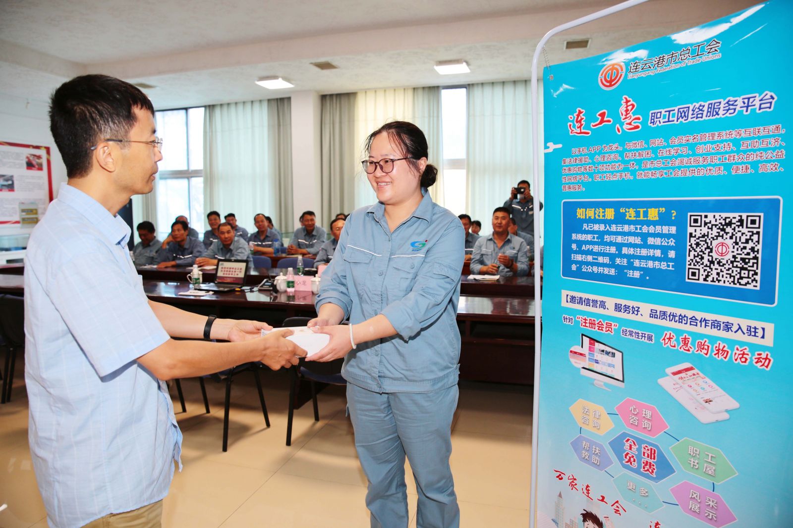 此次調研,孫月春副主席一行帶來三百余冊圖書贈予公司職工書屋,進一步豐富了公司職工的業余文化生活,并向參加連工惠抽獎活動獲獎的我公司職工伏廣偉頒獎。連工惠運營人員針對“連工惠”平臺注冊相關事宜進行了面對面指導,并一一解答了現場參會人員提出的問題。
