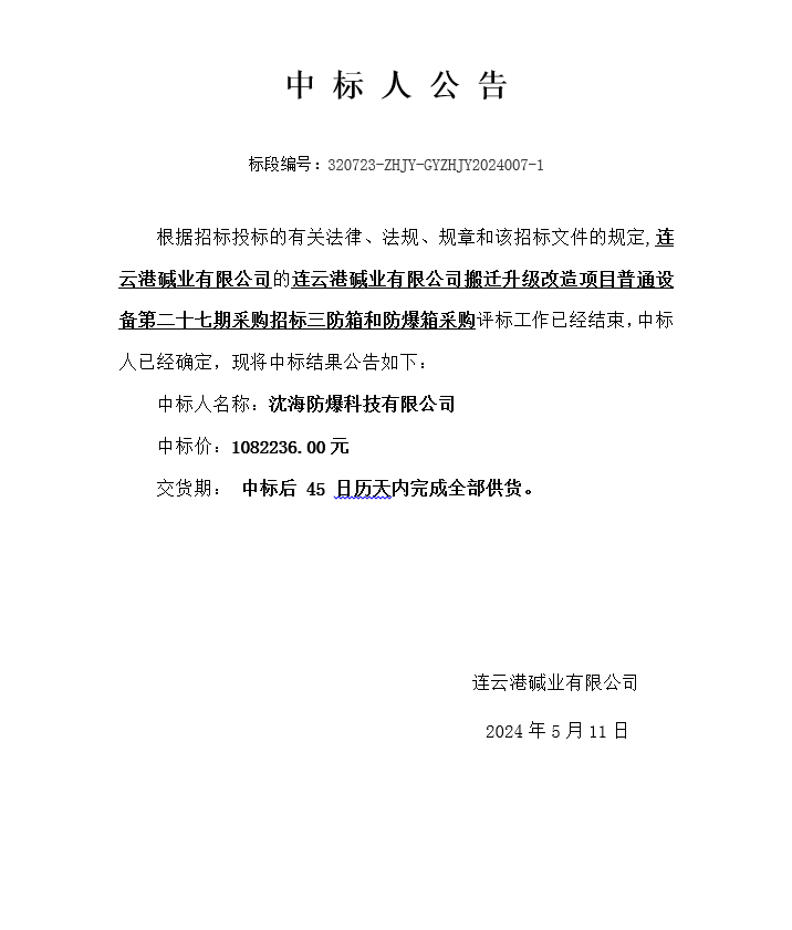搬遷升級改造項目普通設(shè)備第二十七期采購招標(biāo)三防箱和防爆箱采購中標(biāo)人公告