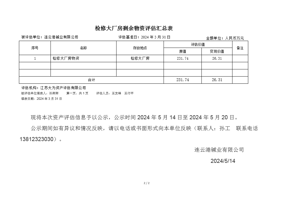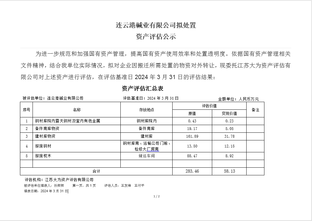 檢修廠房及鋼材庫物資資產(chǎn)評(píng)估公示